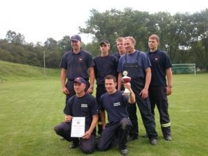 Kreismeisterschaft Weimarer Land 2007Leichtes Spiel für LengefeldBeim Kreispokal im Löschangriff setzten sich sowohl die Männer- als auch die Frauenmannschaft von Lengefeld gegen die Konkurrenz durch. Unsere Mannschaft sicherte sich trotz Problemen den zweiten Platz vor Thangelstedt.Mit einer Lanzbulldog-Ausfahrt und anschließendem Pizzaessen wurde der Podiumsplatz gefeiert. |