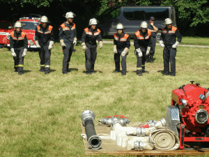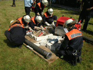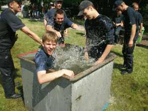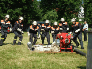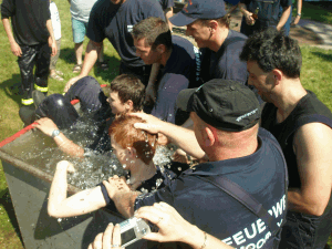 Stadtmeisterschaft 2007Unsere 1. Mannschaft holt sich trotz Problemen den 12. Stadtmeistertitel.Die Stadtmeisterschaft am 09.06.2007 stand unter dem Zeichen Pleiten, Pech und Pannen. Gleich fünf der neun angetretenen Männermannschaften leisteten sich mehr oder weniger grobe Fehler.- Rödigsdorf : mehrfach abgefallener Saugkorb (6. Platz) - Apolda 1 : verlorenes Strahlrohr (nicht gewertet)- Zottelstedt 2 : Ziellinie nicht erreicht (disqualifiziert) - Apolda 2 : abgefallene Saugleitung (5. Platz) - Oberroßla : Probleme mit der Pumpe (7.Platz) Unsere 1.Mannschaft sicherte sich nach einer Startwiederholung(Frühstart)und einer mäßigen Zeit von 30,70s glücklich den 1.Platz vor Moorental und Utenbach. Vierte wurde die Mannschaft aus Schöten.![]() ![]() ![]() Sorgfalt beim Aufbau Spannung vor dem Start Der erste Versuch war noch ein Fehlstart ![]() ![]() ![]() alle Zottelstedter Mannschaften enttäuscht die 2. Mannschaft nach der Disqualifikation Stadtmeister 2007 ![]() Tradition, die Taufe der jungen Kameraden nach Ihrem ersten Wettkampf. Christopher Steitz, Martin Elle und Marcel Wickardt sowie Chris Vollrath aus Moorental ![]() ![]() |